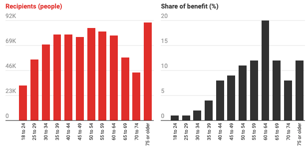 The benefits flow to the wealthy and people over 60
